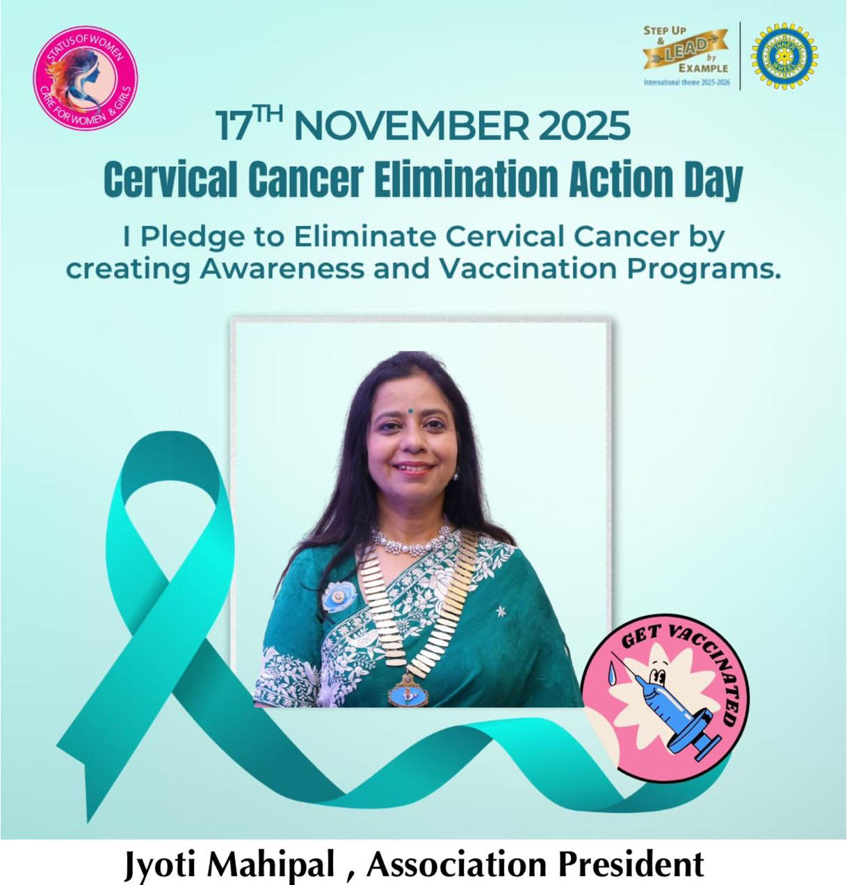 As the sun rises on 1st July, we turn a fresh page—one that awaits our ink of purpose, passion, and perseverance. Standing on the threshold of a new Inner Wheel year 2025–26, filled with promise and possibilities, it is my pleasure to extend my warmest greetings to each and every one of Inner Wheel members across the world. I embrace my role as the 50th Association President of the Association of Inner Wheel Clubs in India with humility and honour. This golden moment marks a legacy of dedication, strength, and inspiration.